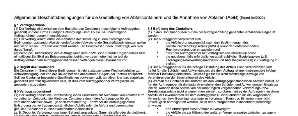 schreiben Sie uns eine E-Mail an info@huendgen-entsorgung.de