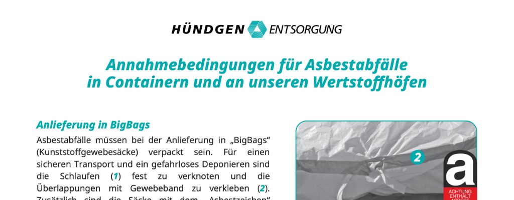 Für die Entsorgung von Asbestabfällen gelten besondere Annahmebedingungen. Lesen Sie hier nach worauf Sie bei der Anlieferung zu achten haben.