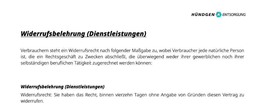 Für ein Widerrufen unseres Vertrags, füllen Sie bitte dieses Formular aus und senden es an uns zurück.