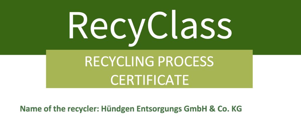 Zertifikat zur Rückverfolgbarkeit der hergestellten recycelten Kunststoffe nach EN 15343:2007 – gültig bis 05.09.2025